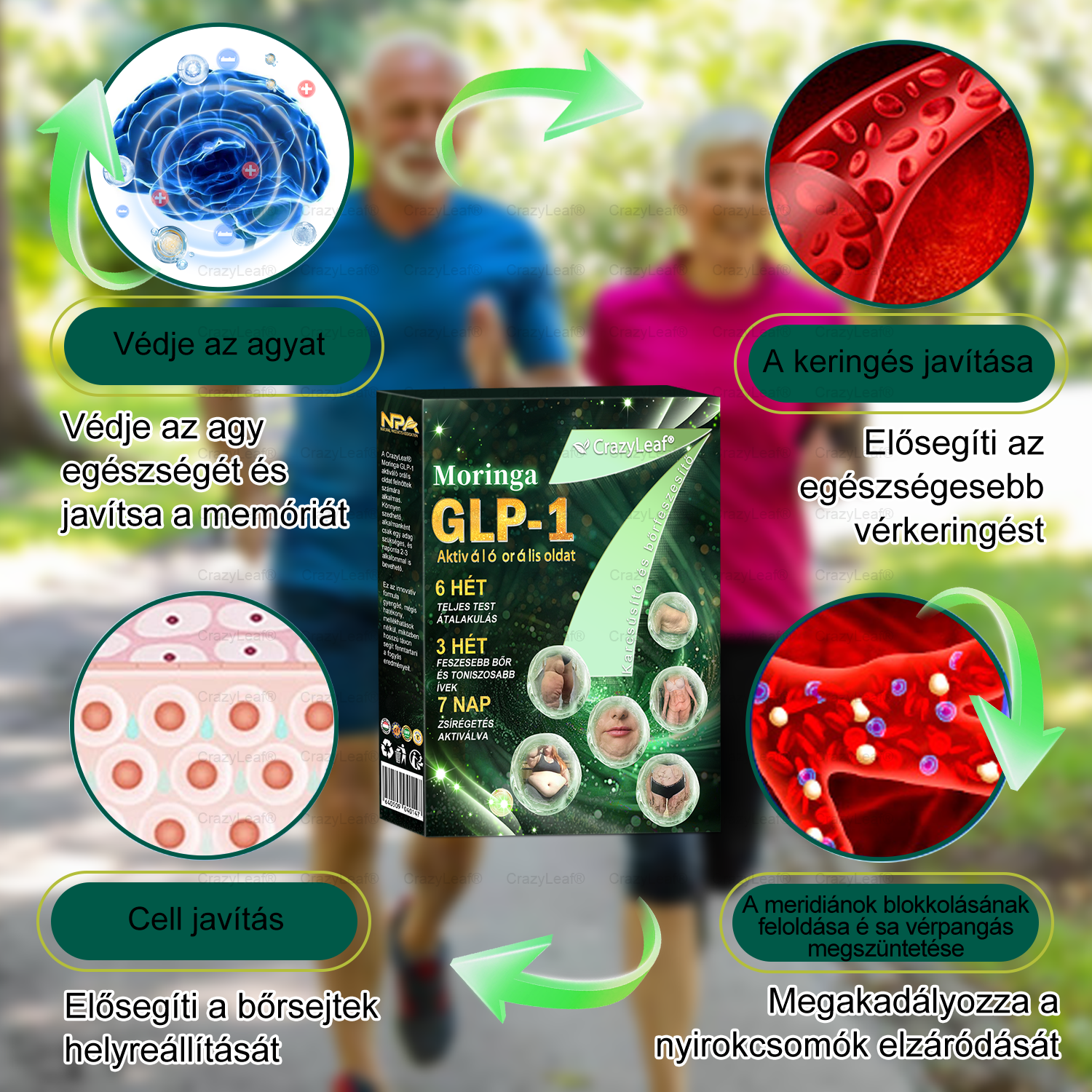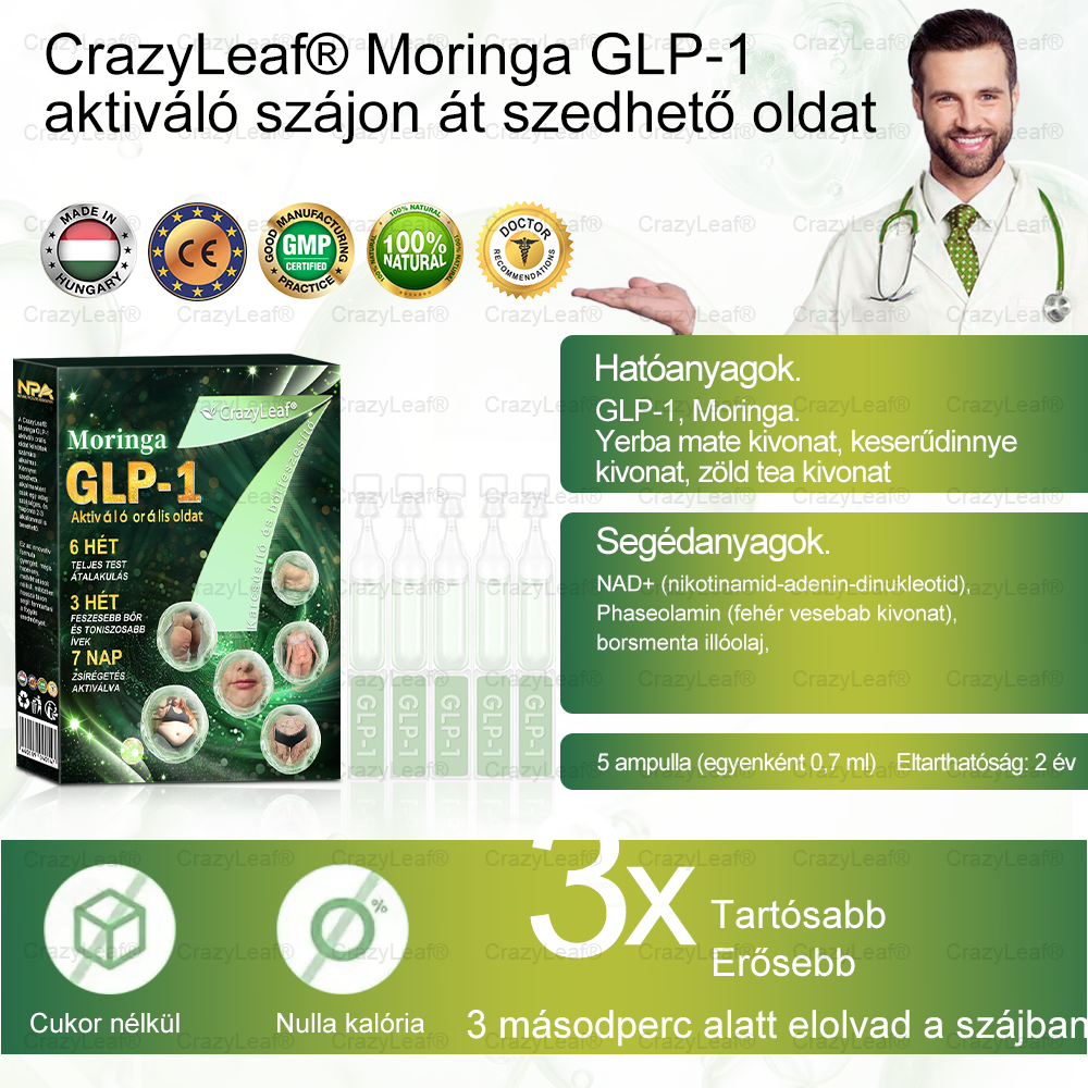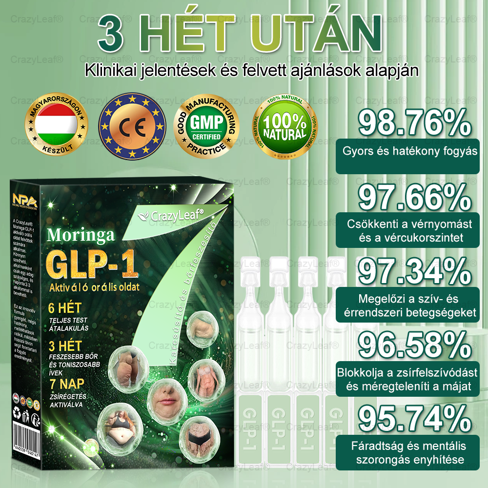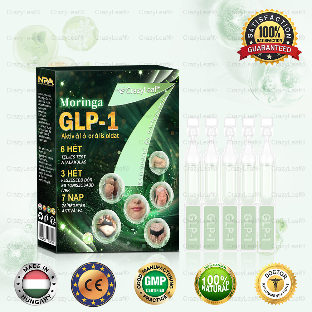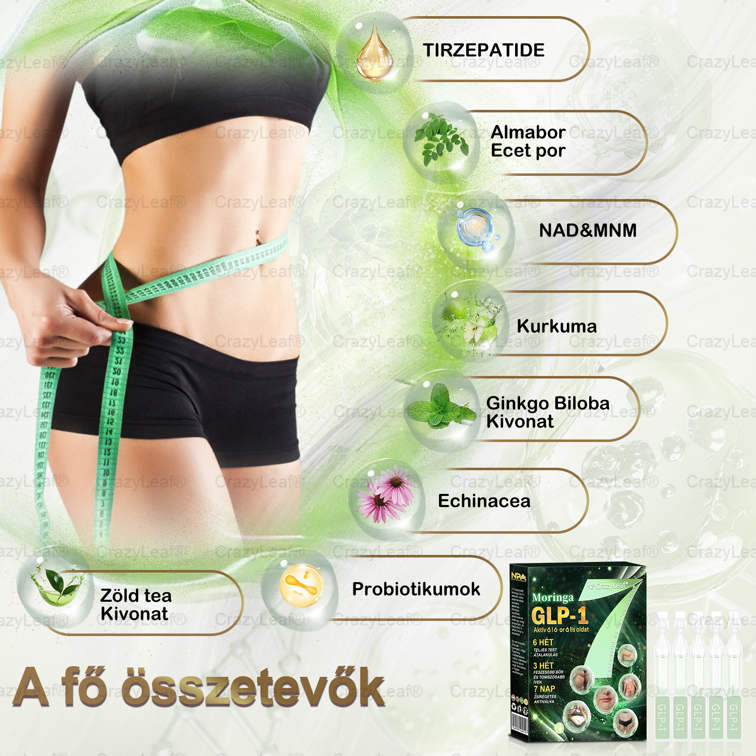 CrazyLeaf® Meglutide GLP-1 Aktiváló Orális Oldat – Moringa • NAD+ • Yerba Mate – Természetes támogatás fogyáshoz, öregedésgátláshoz és cukoranyagcseréhez