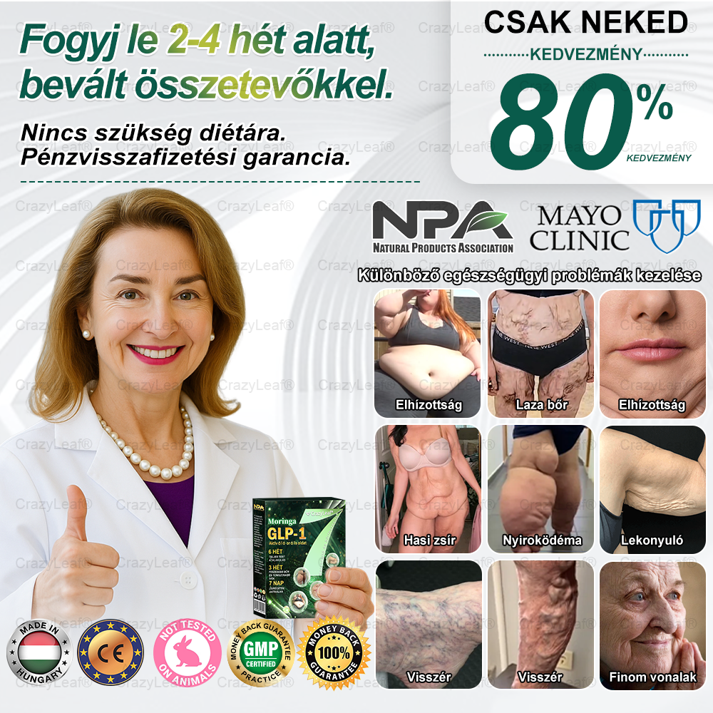 „Egykor halálközeli állapotba kerültem a súlyos elhízás miatt. Az egészségem rohamosan romlott – magas vérnyomással, cukorbetegséggel küzdöttem, és még az ágyból sem volt energiám kikelni. Számtalan diétát és kezelést kipróbáltam, de semmi nem segített. Aztán rátaláltam a CrazyLeaf® Meglutide GLP-1 Aktiváló Szájon át szedhető oldatra. Eleinte szkeptikus voltam, de úgy döntöttem, adok neki egy esélyt. Legnagyobb meglepetésemre, mindössze két hónap alatt 90 kilót fogytam, a vérnyomásom normalizálódott, és energikusabbnak éreztem magam, mint valaha. Ez a termék valóban megmentette az életemet, és második esélyt adott arra, hogy egészséges és boldog életet élhessek.”