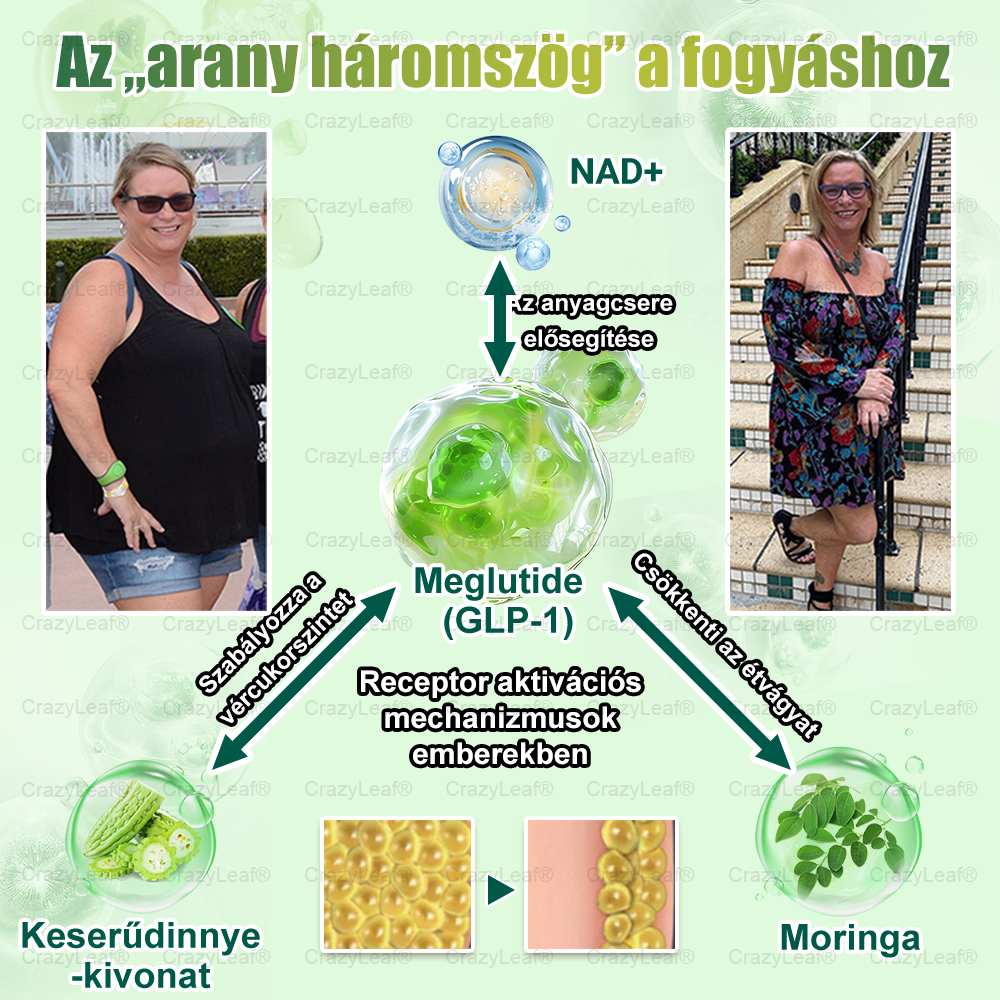 Klinikailag tesztelt endokrinológusok által, a CrazyLeaf® Meglutide GLP-1 Aktiváló Orális Oldat jelentősen javíthatja az elhízást és egyéb egészségügyi problémákat mindössze 14 napon belül.