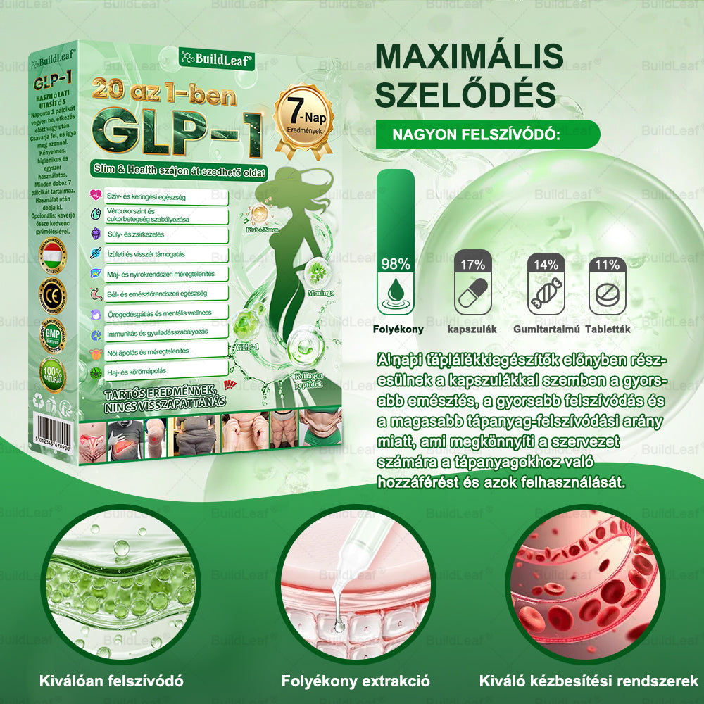 A BuildLeafÂź GLP-120-in-1 Slim & Health szĂĄjon ĂĄt szedhetĆ oldatot több mint 20 Ă©vnyi kutatĂĄs eredmĂ©nyekĂ©nt fejlesztettĂ©k ki, több mint 30 szakĂ©rtĆ rĂ©szvĂ©telĂ©vel, Ă©s minden felnĆtt Ă©s minden testalkat szĂĄmĂĄra kĂ©szĂŒlt. A Tirzepatidot (GLP-1) termĂ©szetes kivonatokkal ötvözi a vĂ©rcukorszint kiegyensĂșlyozĂĄsĂĄra, az Ă©tvĂĄgy csökkentĂ©sĂ©re Ă©s a zsĂrĂ©getĂ©sre a fokozatos, egĂ©szsĂ©ges fogyĂĄs Ă©rdekĂ©ben. HozzĂĄadott kollagĂ©npeptidekkel tĂĄmogatja a bĆr feszessĂ©gĂ©t a fogyĂĄs sorĂĄn. GMP-tanĂșsĂtvĂĄnnyal rendelkezĆ lĂ©tesĂtmĂ©nyekben, amerikai Ă©s uniĂłs szabvĂĄnyok szerint kĂ©szĂŒl, biztonsĂĄgos, tudomĂĄnyosan alĂĄtĂĄmasztott, tƱmentes megoldĂĄst kĂnĂĄl a hatĂ©kony testsĂșlyszabĂĄlyozĂĄshoz Ă©s a tartĂłs egĂ©szsĂ©ghez.