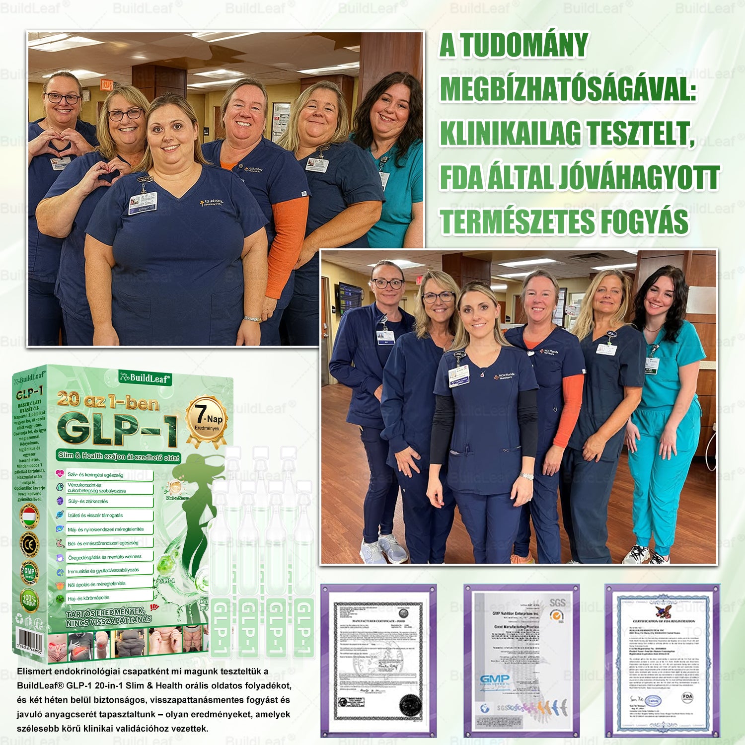 "EndokrinolĂłgiai szakĂ©rtĆkbĆl ĂĄllĂł csapatunk tagjainak többsĂ©ge szemĂ©lyesen is tapasztalta az elhĂzĂĄst Ă©s a kapcsolĂłdĂł szövĆdmĂ©nyeket. EzĂ©rt elkötelezettek vagyunk amellett, hogy biztonsĂĄgos, termĂ©szetes Ă©s hatĂ©kony megoldĂĄsokat fejlesszĂŒnk ki az anyagcsere-egĂ©szsĂ©g javĂtĂĄsĂĄra Ă©s a testsĂșlyszabĂĄlyozĂĄs tĂĄmogatĂĄsĂĄra. A 12 Ă©ves kutatĂĄs sorĂĄn csapattagjaink elĆször maguk teszteltĂ©k a megoldĂĄst, jelentĆs sĂșlycsökkenĂ©st elĂ©rve mellĂ©khatĂĄsok vagy visszapattanĂĄs nĂ©lkĂŒl. EzutĂĄn kiterjedt tanulmĂĄnyokat Ă©s klinikai vizsgĂĄlatokat vĂ©geztĂŒnk több mint 5000 rĂ©sztvevĆ bevonĂĄsĂĄval, amelyek tovĂĄbb megerĆsĂtettĂ©k, hogy a BuildLeafÂź GLP-120-in-1 Slim & Health szĂĄjon ĂĄt szedhetĆ oldat figyelemre mĂ©ltĂł Ă©s tartĂłs elĆnyöket biztosĂt az anyagcsere-szabĂĄlyozĂĄsban, az Ă©tvĂĄgyszabĂĄlyozĂĄsban Ă©s az ĂĄltalĂĄnos egĂ©szsĂ©gjavĂtĂĄsban a 40 Ă©v feletti, elhĂzĂĄssal kĂŒzdĆ egyĂ©nek szĂĄmĂĄra. A modern orvosi kutatĂĄsok ĂĄltal tĂĄmogatott BuildLeafÂź GLP-120-in-1 Slim & Health szĂĄjon ĂĄt szedhetĆ oldat megfelelt az FDA szigorĂș szabĂĄlyozĂĄsi felĂŒlvizsgĂĄlatĂĄnak Ă©s tanĂșsĂtĂĄsĂĄnak, hatĂ©konysĂĄgĂĄt Ă©s megfelelĆsĂ©gĂ©t hivatalosan is validĂĄltĂĄk. MegbĂzhatĂł, tudomĂĄnyosan megalapozott vĂĄlasztĂĄs, kĂŒlönösen azok szĂĄmĂĄra, akik termĂ©szetes, biztonsĂĄgos Ă©s hatĂ©kony megközelĂtĂ©st keresnek a testsĂșlyszabĂĄlyozĂĄshoz Ă©s az ĂĄtfogĂł egĂ©szsĂ©gĂŒgyi tĂĄmogatĂĄshoz. AkĂĄr Ă©vek Ăłta kĂŒzd a sĂșlyĂĄval, akĂĄr csak az egĂ©szsĂ©gĂ©t szeretnĂ© megvĂ©deni az öregedĂ©ssel, ez egy biztonsĂĄgos, tudomĂĄnyosan alĂĄtĂĄmasztott megoldĂĄs, amelyben megbĂzhat."