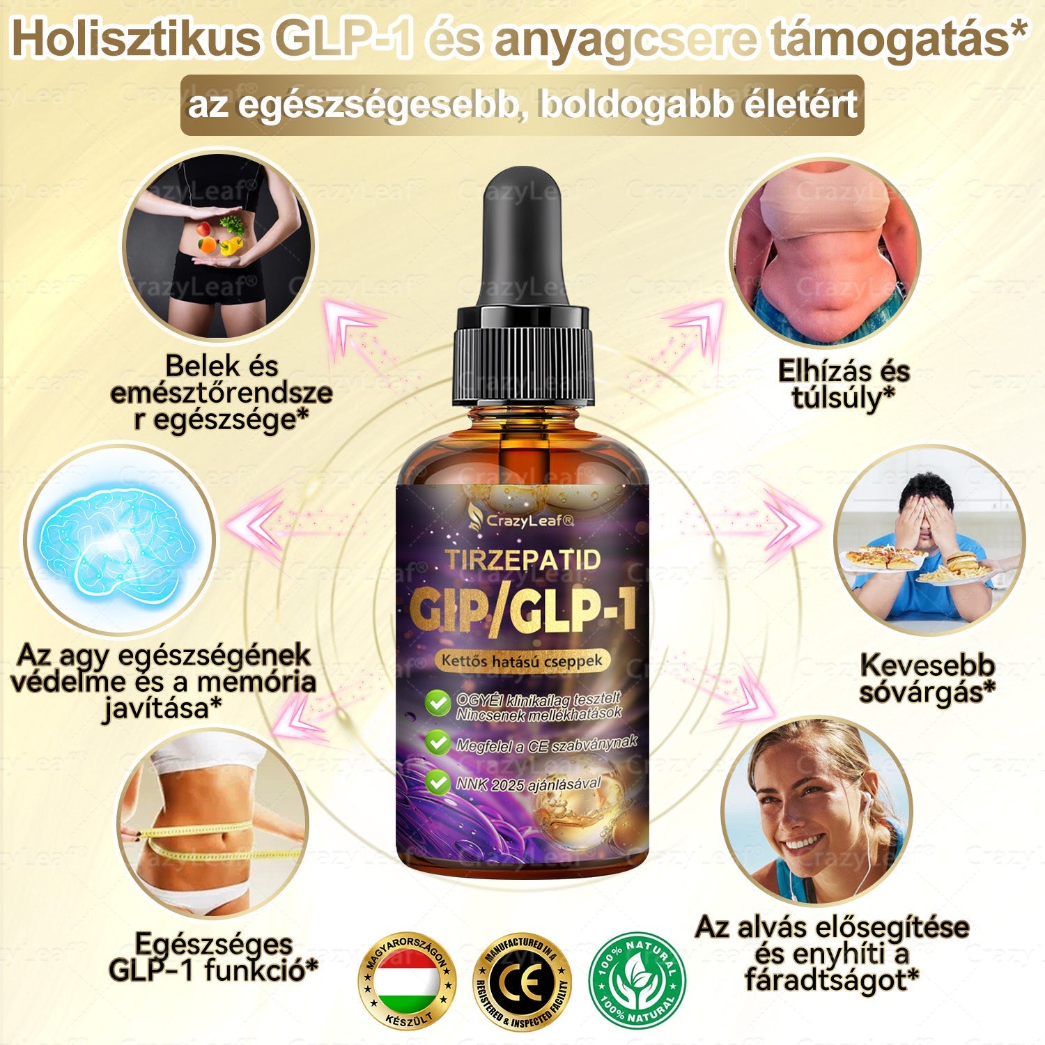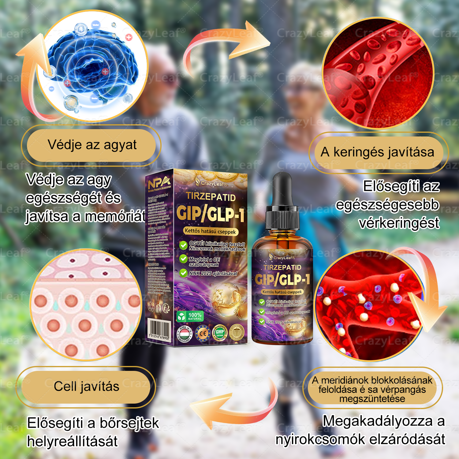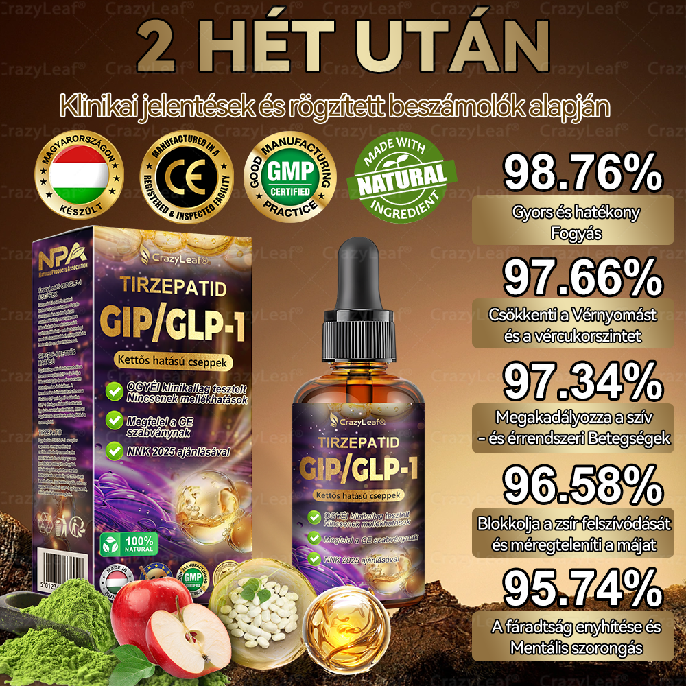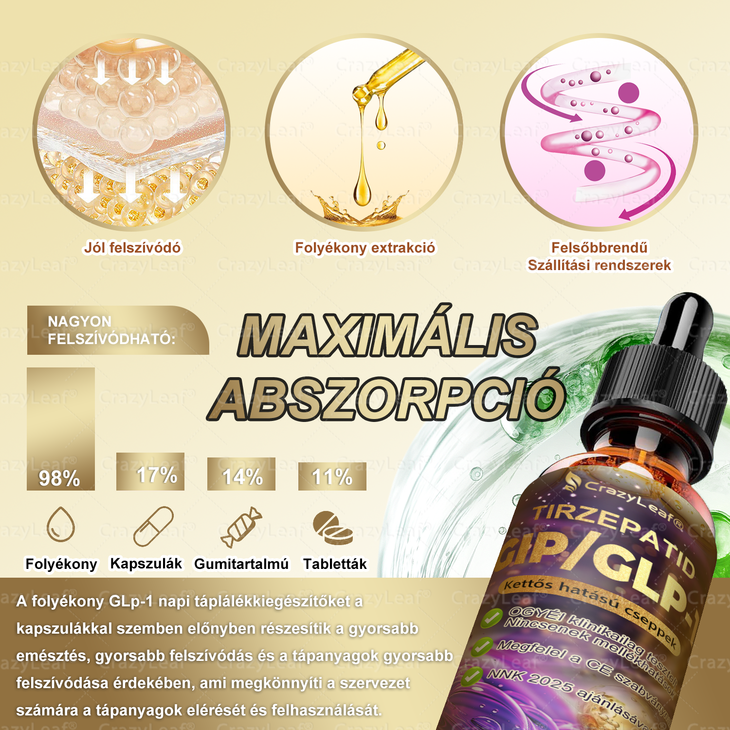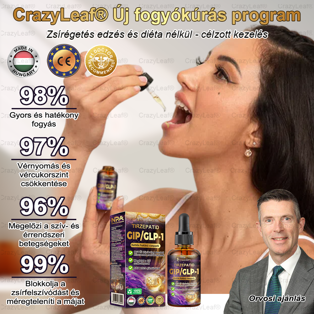 CrazyLeaf® Tirzepatide GIP/GLP-1 kettős hatású karcsúsító és egészségfokozó cseppek | A Budapesti Orvosi Esztétikai és Elhízás Klinikák támogatásával (Klinikailag ihletett, élelmiszeripari minőségű zsírégető )