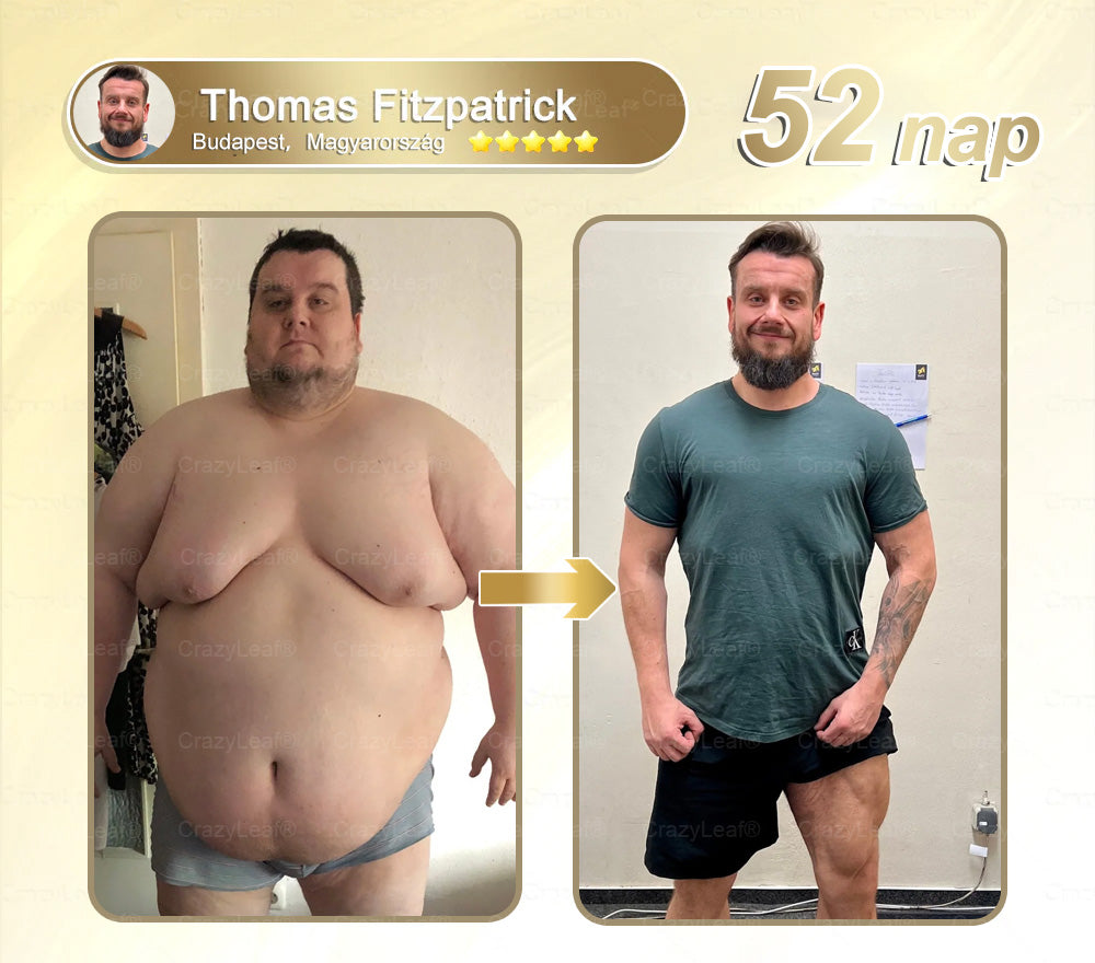 „Egykor a halál szélén álltam a súlyos elhízás miatt. Az egészségem rohamosan romlott – magas vérnyomással, cukorbetegséggel küzdöttem, és nem volt erőm még az ágyból sem felkelni. Számtalan diétát és kezelést próbáltam ki, de semmi sem működött... míg rá nem találtam a CrazyLeaf® Tirzepatide GIP/GLP-1 kettős hatású fogyasztó és egészségjavító cseppekre. Eleinte szkeptikus voltam, de úgy döntöttem, adok neki egy esélyt. Meglepetésemre mindössze két hónap alatt 90 kilót fogytam, a vérnyomásom normalizálódott, és energikusabbnak éreztem magam, mint valaha. Ez a termék valóban megmentette az életemet – második esélyt adott egy egészséges, boldog életre.”
